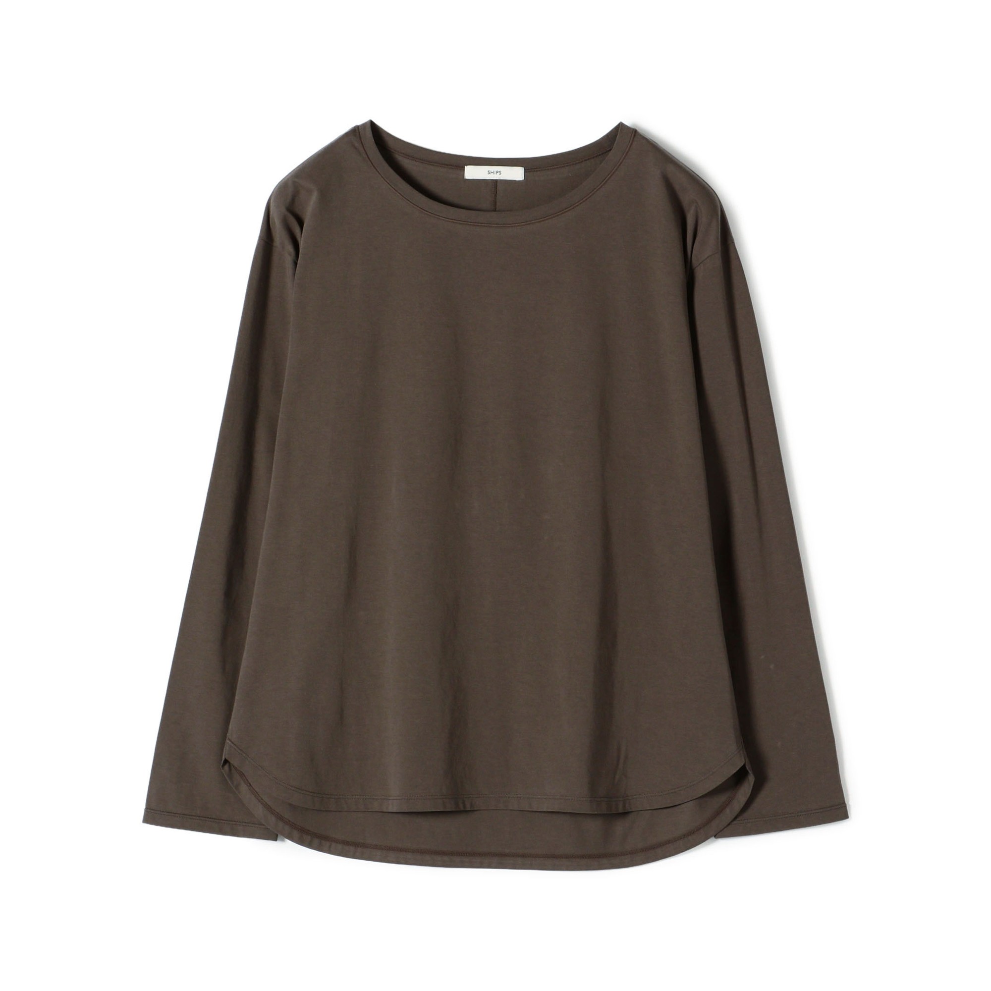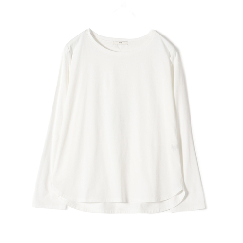 横に広がるクルーネックが首元を美しく見せ、程よいゆとりのシルエットが女性らしさを演出します。インドの超長綿を用いた生地は、毛羽立ちを抑えたクリアな表面感とナチュラルな風合いが特徴。上品な透け感で、オンからオフまで幅広いシーンで活躍します。一枚での着こなしはもちろん、ジャケットやニットとのレイヤードでも映える、シーズンレスで一枚あると重宝する万能なカットソーです。