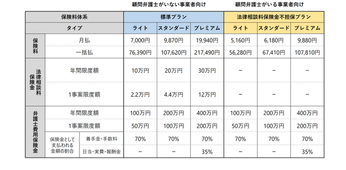 付帯サービス:弁護士直通ダイヤル、税務相談サービス、労務相談ダイヤル