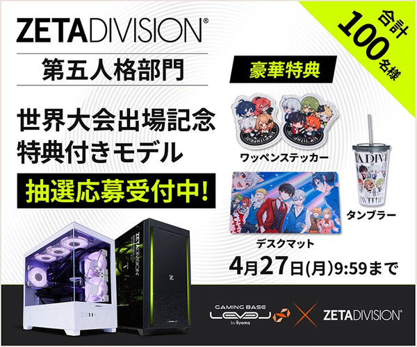 ゲーミングPC LEVEL∞、「ZETA DIVISION」第五人格部門の世界大会出場を記念して、合計100名様限定で「特典付きモデル」の抽選販売応募受付開始