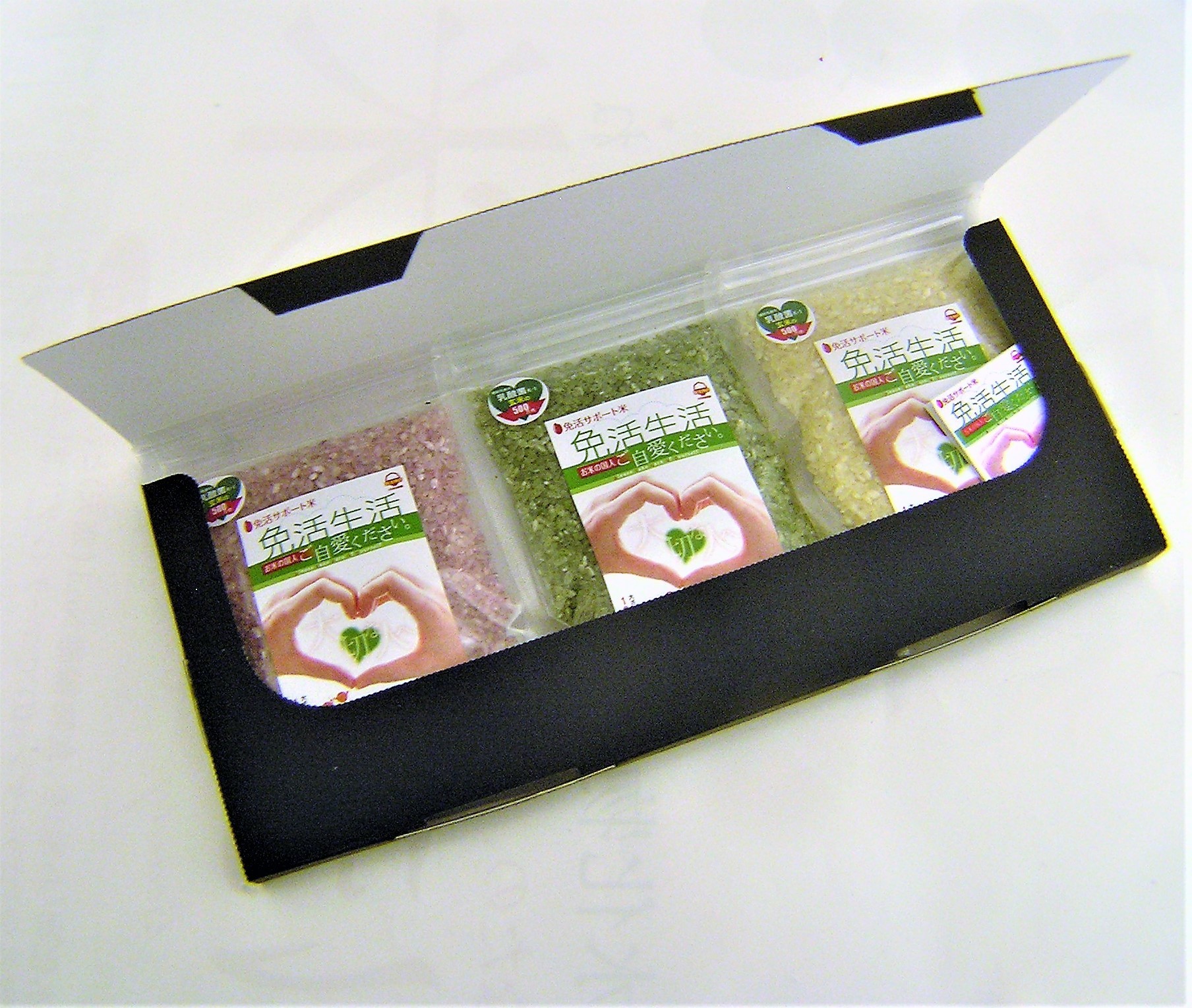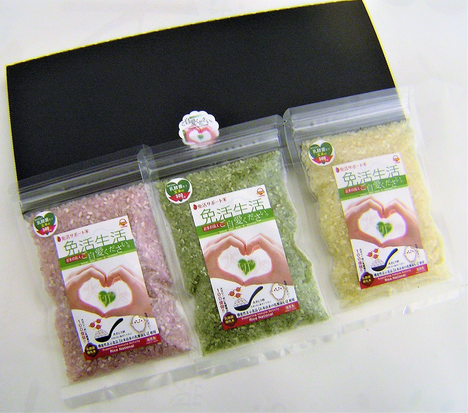 お米の国人の応援として、日々のご飯で心身の癒しと免活を推しようと、本品の開発に至りました。