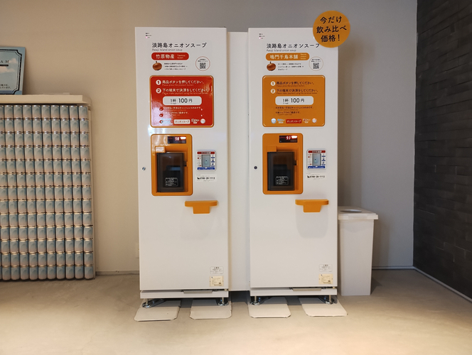さらに、淡路島内のロケーションであれば、同社が補充や清掃を行うことも可能です。玉ねぎスープに限らず、コーヒーやお茶、プロテインにも対応していますので、ご相談ください。
