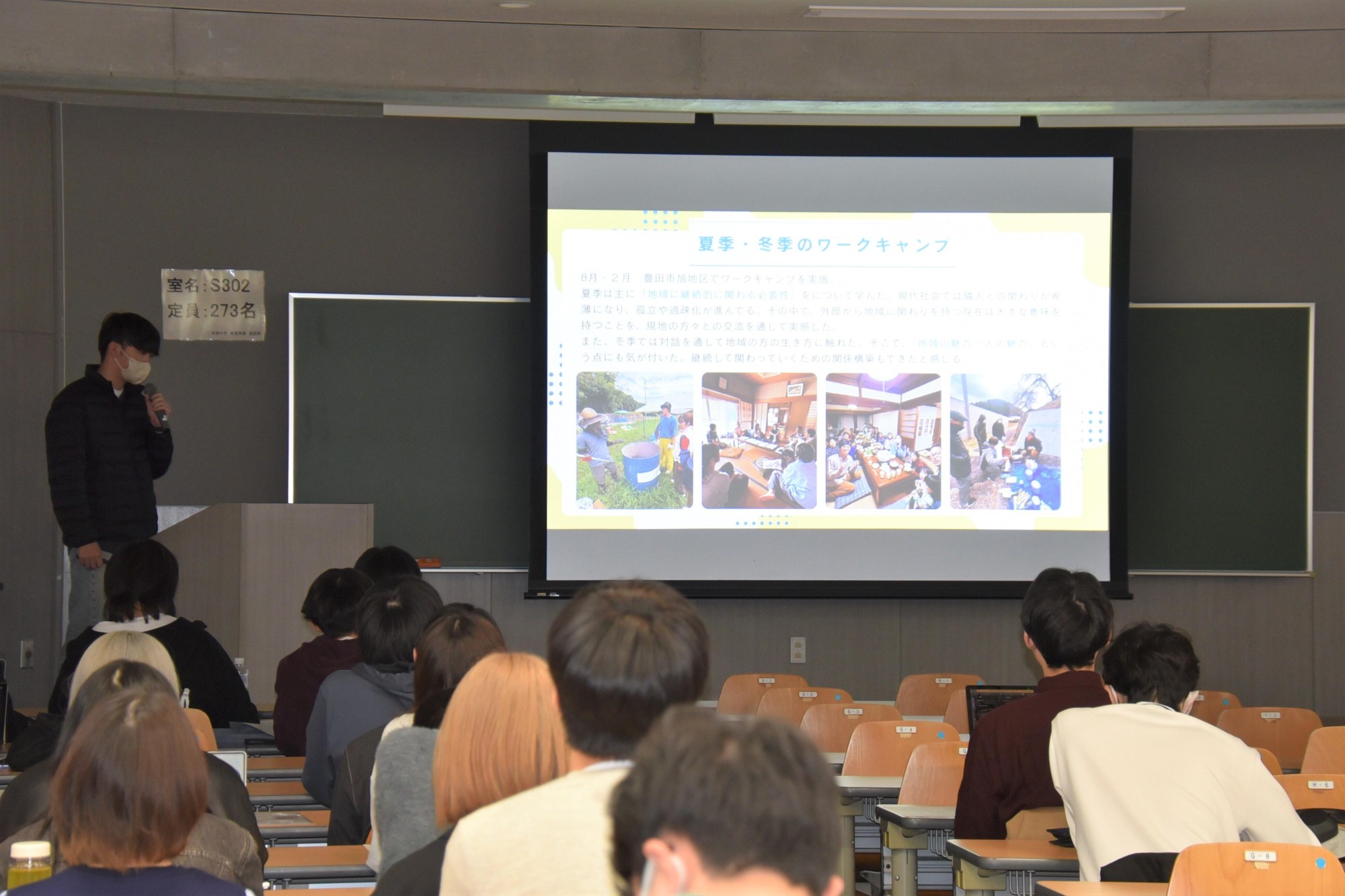 このうち、能登半島地震・豪雨災害で被災した石川県輪島市町野町の復旧・復興活動に取り組む「学び輪プロジェクト」は、流木・倒木を活用した新しいまちづくりやSNSによる被災地の現状の情報発信、幅広いボランティア活動などの取り組みを説明。「現地の方々とはゼロからの関係構築でしたが、『次も待っています』と声を掛けてもらうようになり、信頼関係を構築することができました」と振り返りました。