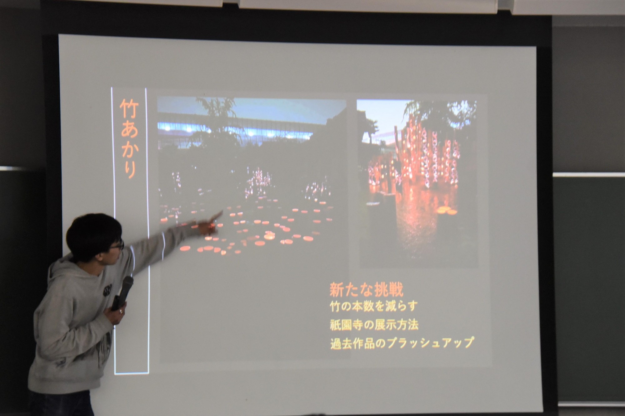 竹林の整備から手掛けて有松地区(名古屋市緑区)の歴史的な街並みの夜を竹の照明オブジェで照らし出すプロジェクトを進める「竹あかり」は10周年の節目の年を迎え、今年度は過去の作品のブラッシュアップを手掛けたことを報告。竹炭などに活用する再資源化や地域との交流にも力を入れ「来年度もより良い『竹あかり』を目指していきます」と意気込みを語りました。