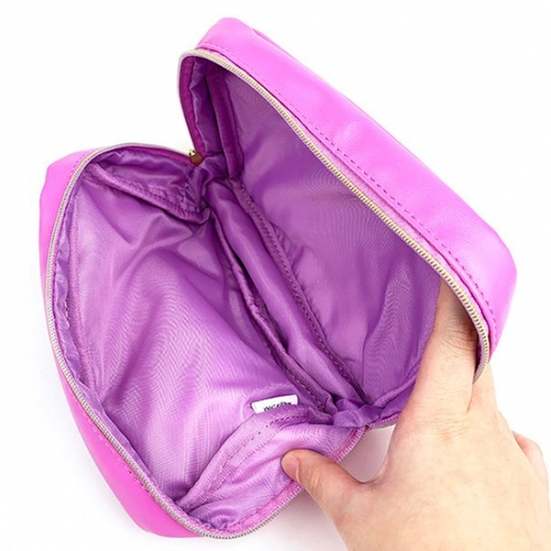 くすみパープルの本体は、少し大人っぽい雰囲気のカラーです。ファスナー部分にはファーもついていて、サイズは130×200×50mm。