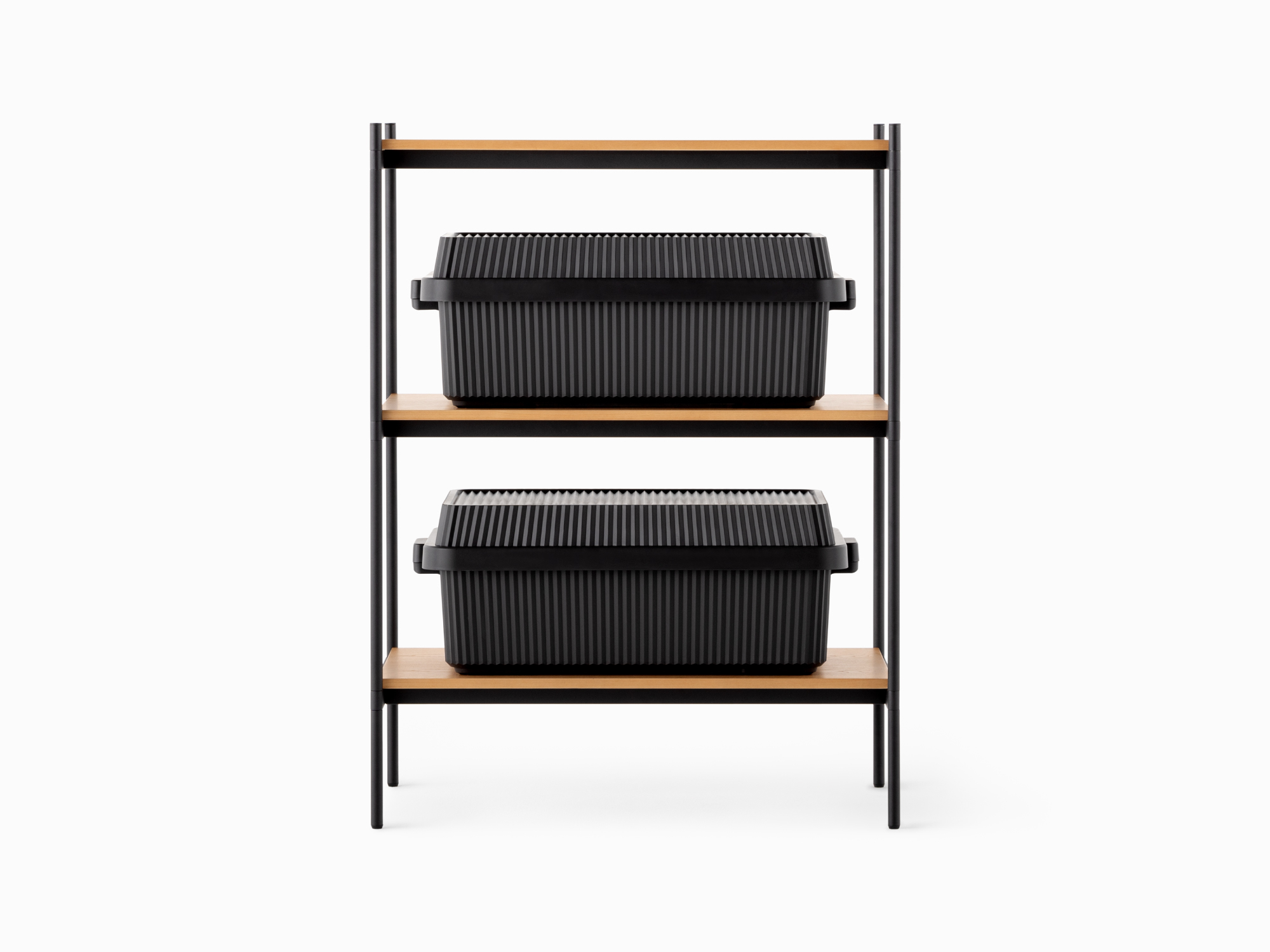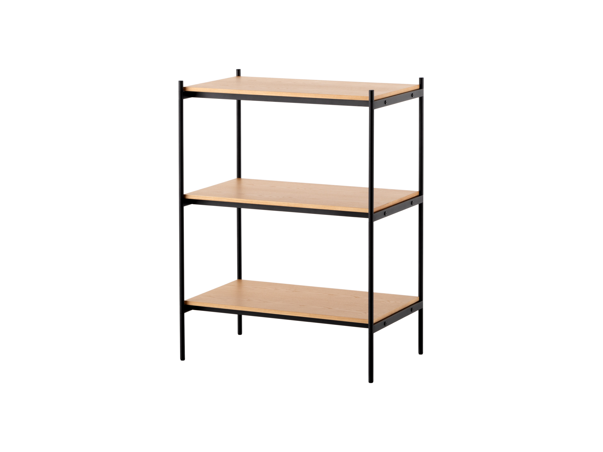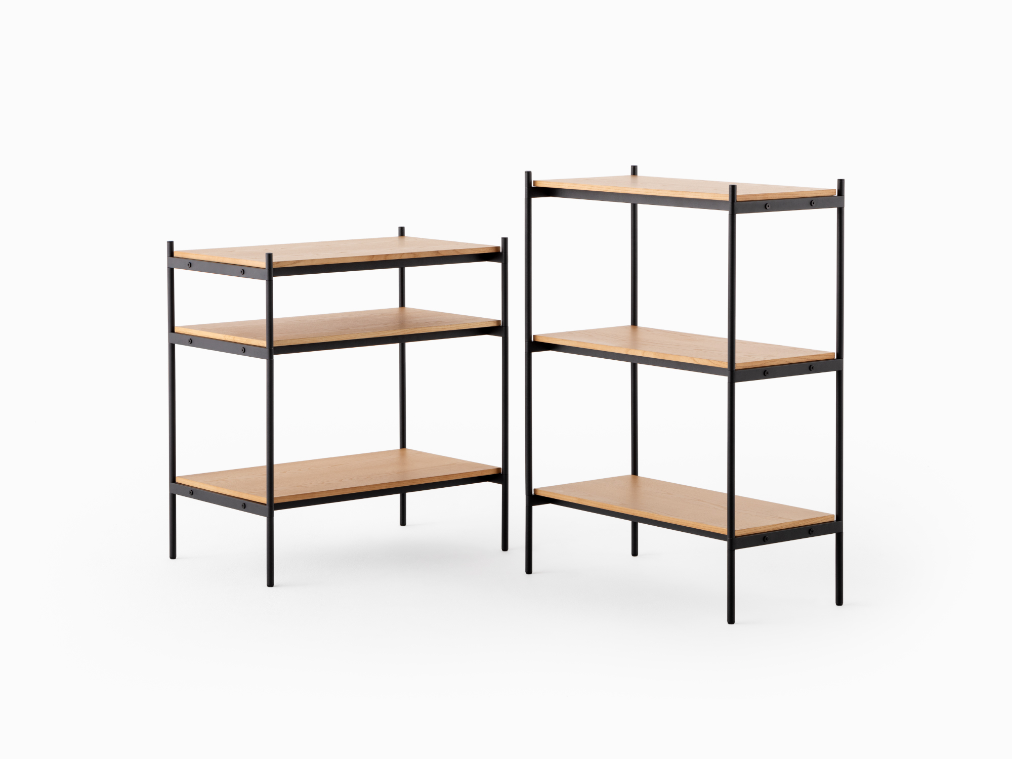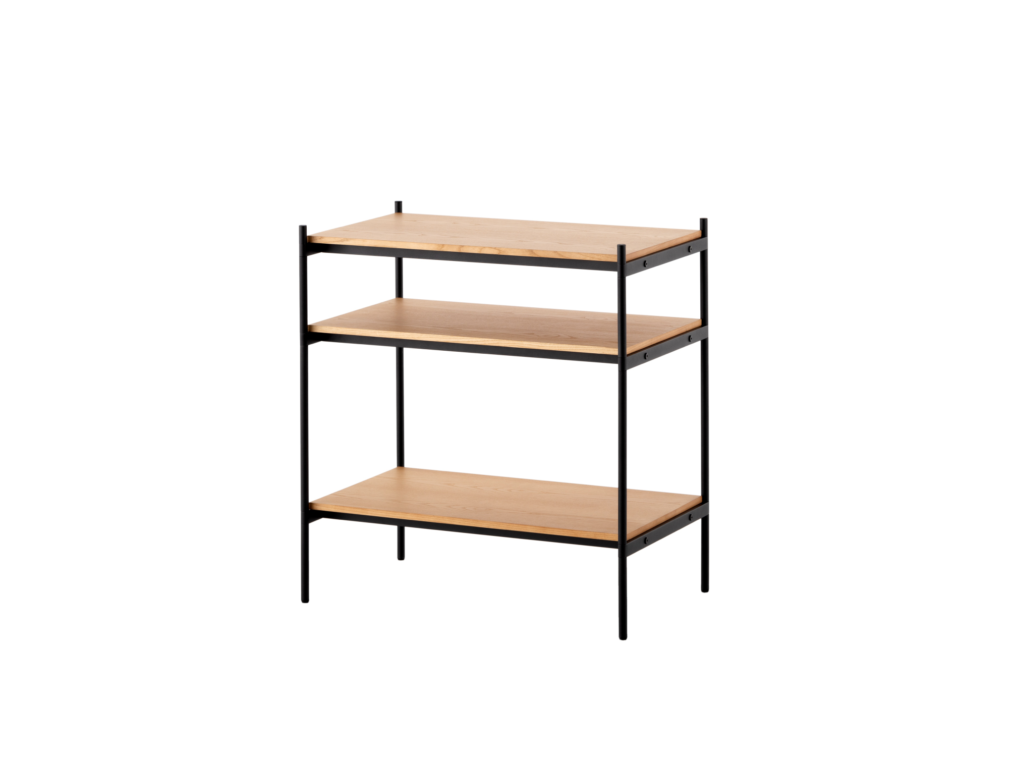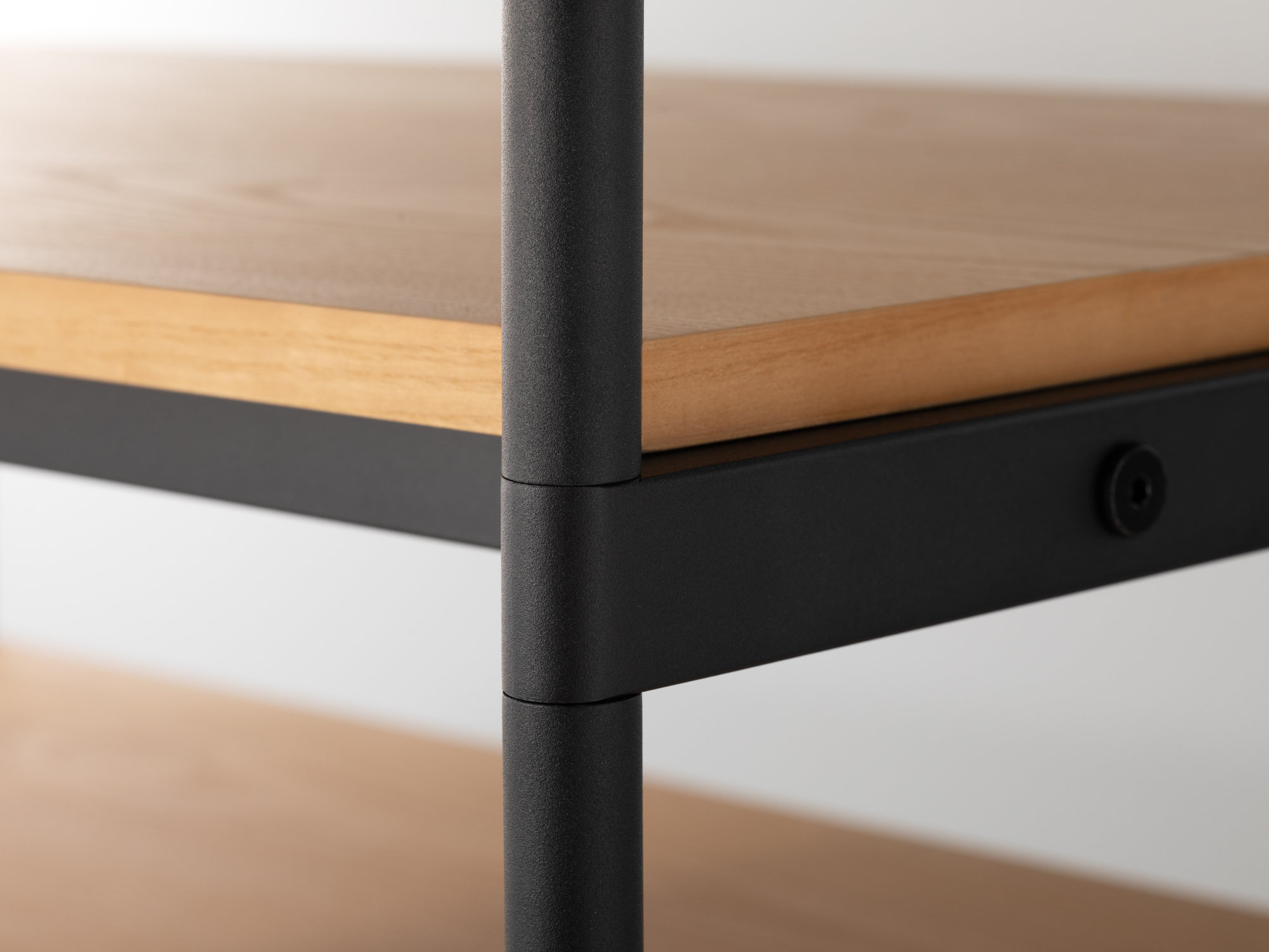 長く使っていただけるよう、傷が目立ちにくい粉体塗装を施した丈夫なスチールを採用。棚板にはナチュラルな風合いを持つ天然木の突板を使用し、耐水性に優れたラッカー塗装を施しました。