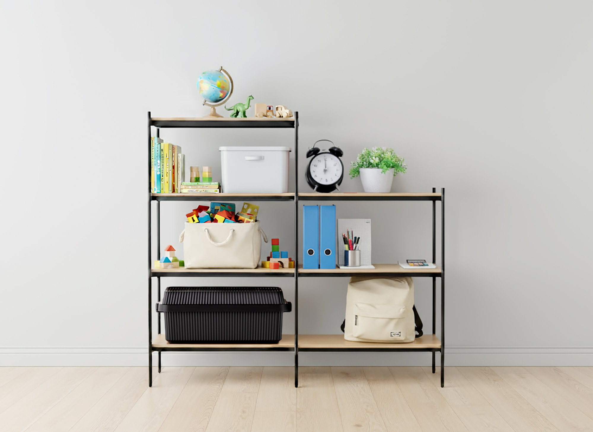 住居空間や生活様式に応じてカスタマイズができるオープンシェルフ。ライクイットの収納用品に合わせたサイズ設計。デザイン性の高い収納用品と組み合わせて使うことで、効率的で美しい“見せる収納”を実現。