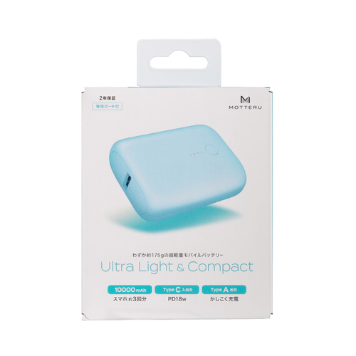 株式会社MOTTERU(本社:神奈川県海老名市、代表取締役:櫻田 良太、以下 MOTTERU)は、USB Power Delivery 18Wに対応したモバイルバッテリー ULTRA LIGHT COMPACT「MOT-MB10001」を9月4日から販売開始いたします。