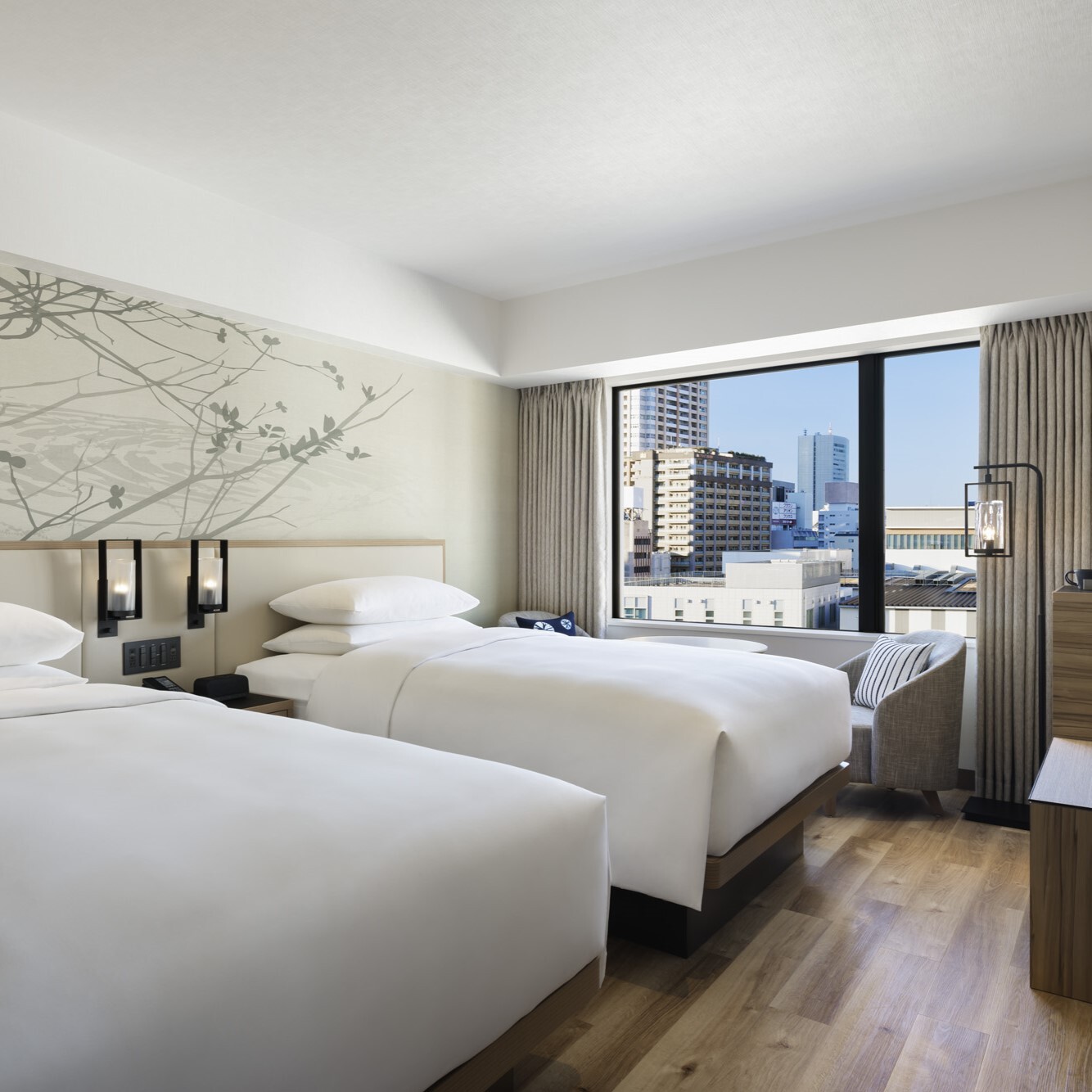 栄の新しいランドマーク、中日ビルに開業した「ザ ロイヤルパークホテル アイコニック 名古屋」。高層階から一望できる景色と、随所に和の要素を感じられる客室が魅力です。今回、スーペリアツイン「Present」の宿泊券を1組2名様にプレゼント! 印象的なマルチカウンターは、茶筒からインスピレーションを受けており、中部の職人技が光る一室です。