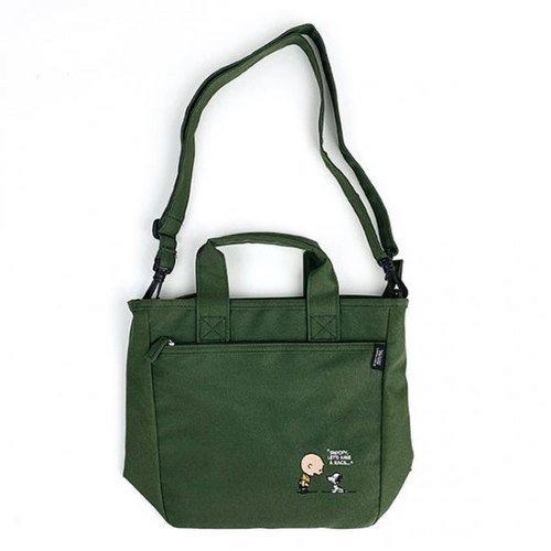 寝そべりデザインのスヌーピーがキュートな、ボトルインショルダーバッグが登場です。クールでベーシックなブラックのボディで、帆布素材のオシャレなバッグ♪持ち手とショルダーベルトが付いているので、2EAYで使用できちゃいます。