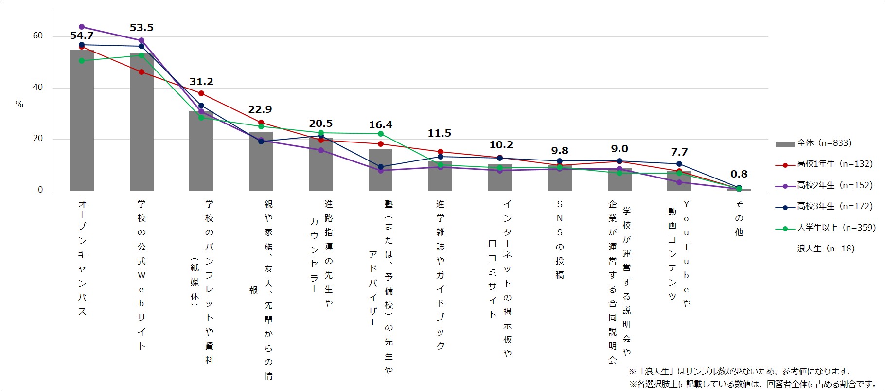 進学先についての情報収集において“公式の情報源”が最も重視されている。