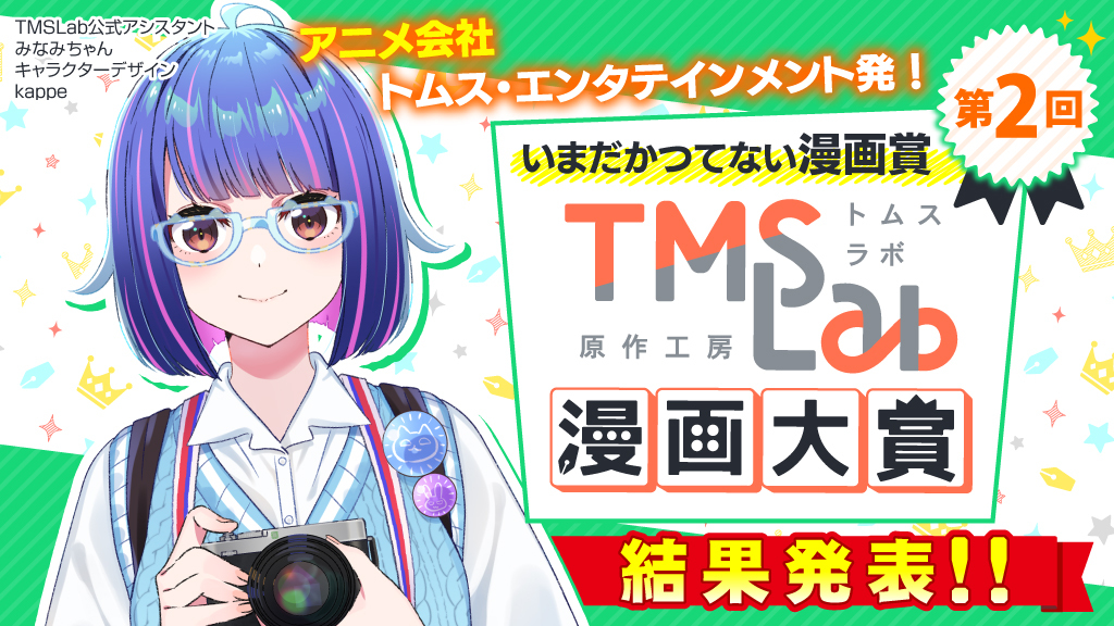 「原作工房TMSLab(トムスラボ)」は、今後もクリエイターと積極的にIP創出を行うことを目指し、『第3回トムスラボ漫画大賞』を開催中!引き続き、既存の枠に捉われない新たな才能を[総合部門]と[テーマ部門]の2部門で募集し、大賞は賞金300万円と連載確約の他、大賞と入選の受賞作は人気声優出演による漫画動画化などの特典もご用意し、たくさんのご応募を、お待ちしております!