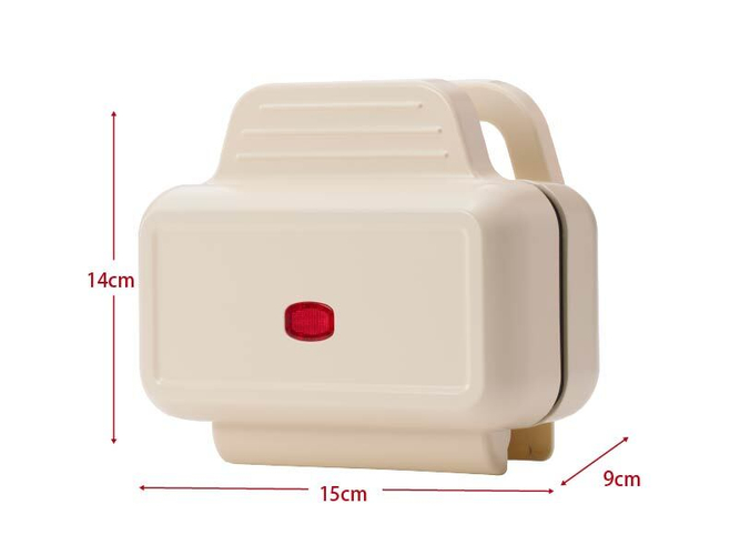 本製品のサイズは約15×14×9cm、重さは800gと2枚焼きに比べて非常にコンパクト。