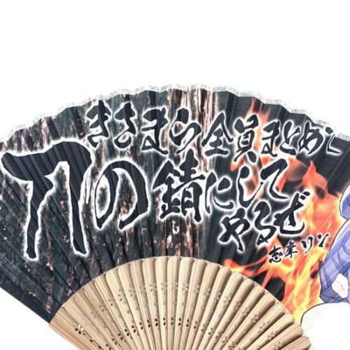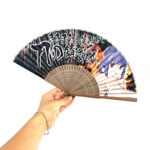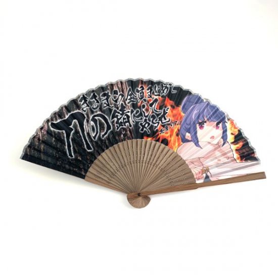 『きさまら全員まとめて刀の錆にしてやるぜ』ゆるキャン△のリンちゃん×愛用の鉈(なた)デザインの薪割り扇子。キャンプのお供にも