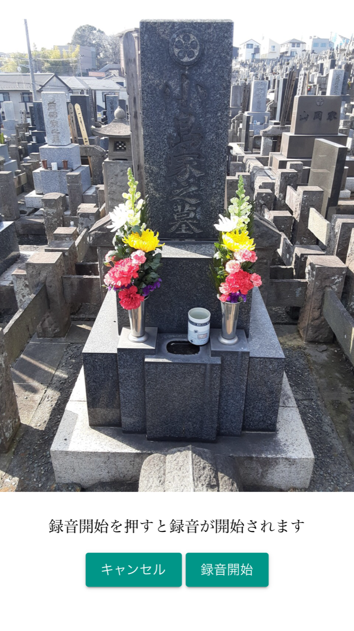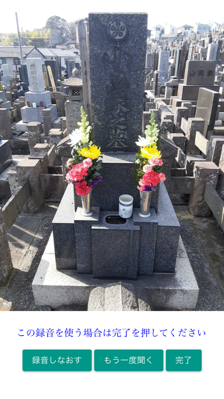 墓前メッセージ録音:お墓の写真を見ながらメッセージの吹き込み