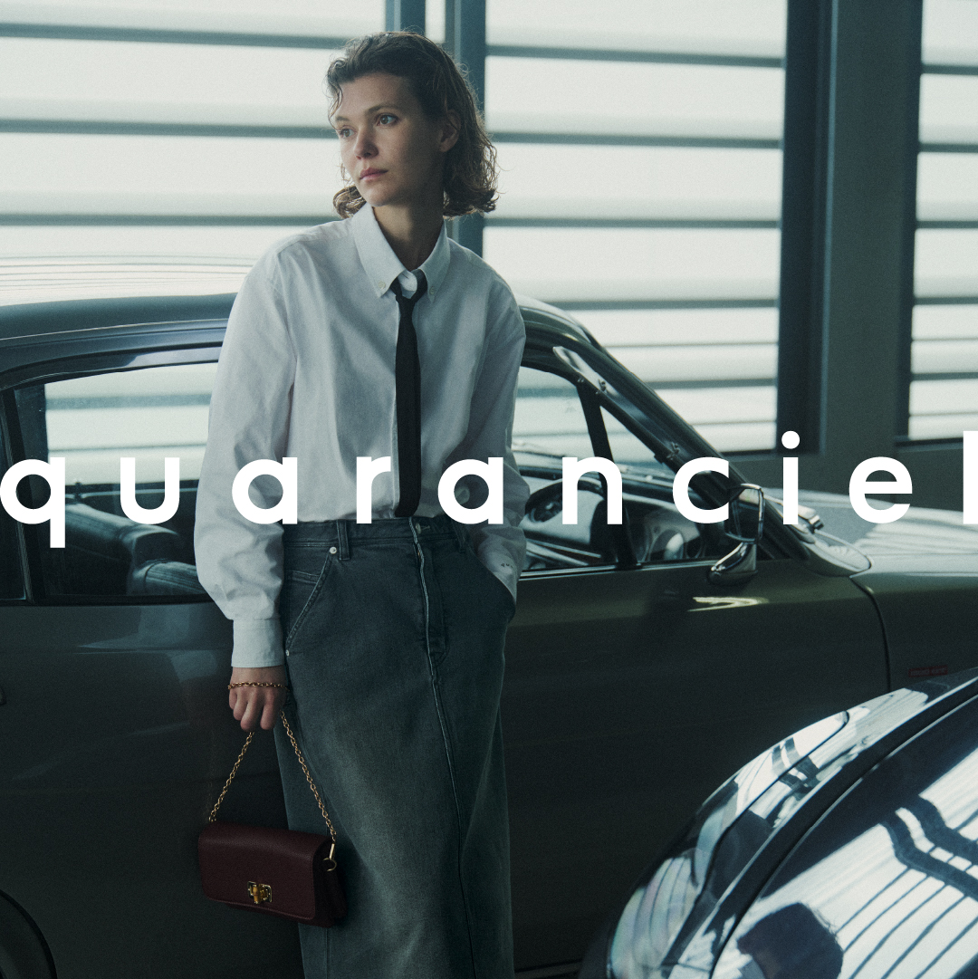 ブランド名の由来は、フランス語の「quarante(40)」に「ciel(空)」を掛け合わせた造語。女性の40歳は仕事や子育て、プライベートと多忙を極め、ライフスタイルも様々な一方で、年齢と経験を重ねて自分のスタイルが確立されていく。「quaranciel」は、そんな果てしなく広がる空のような可能性を感じる、魅力的な大人の女性に寄り添うブランドです。