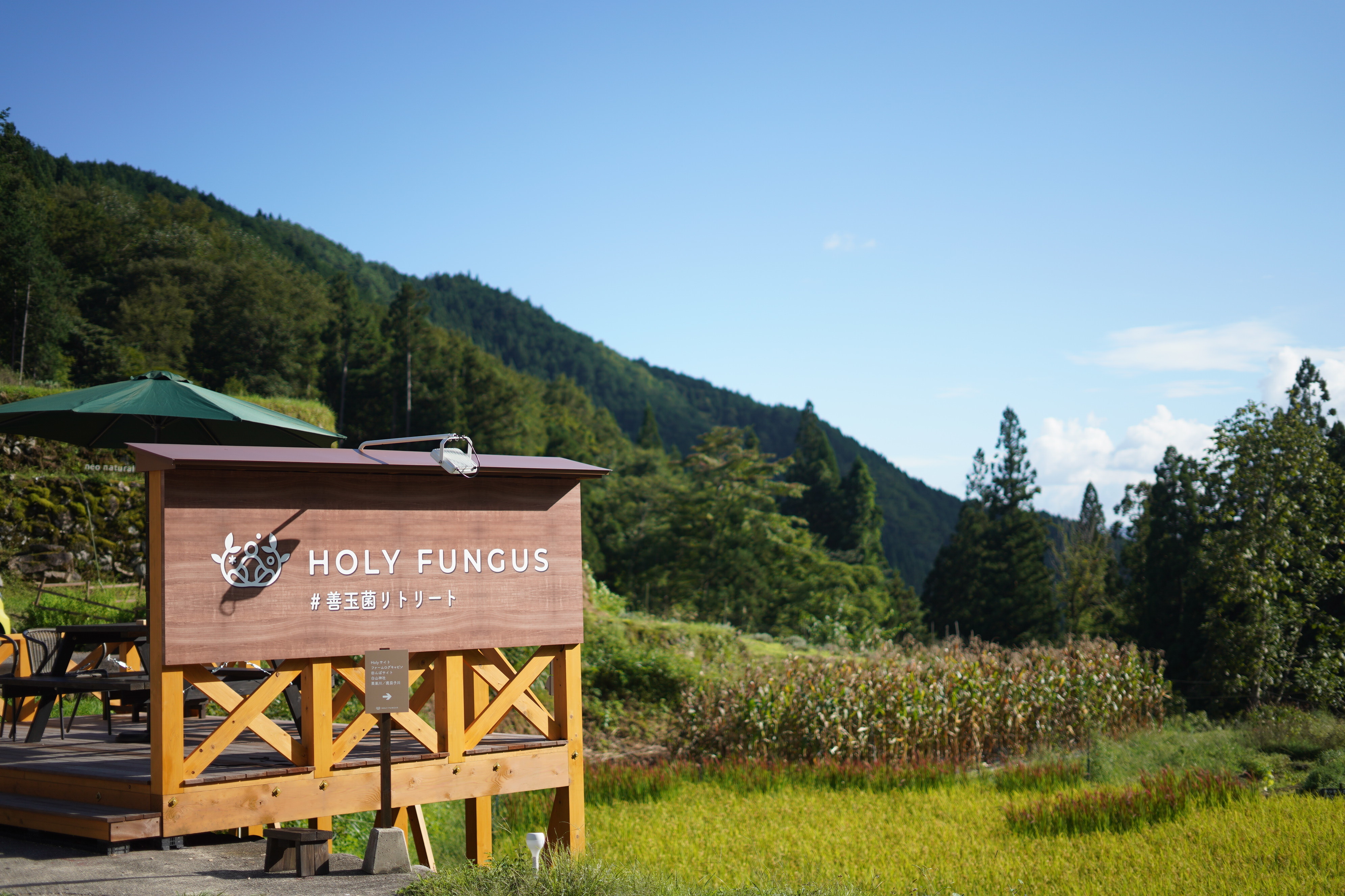 その有機農場では、毎年田植え、ハーブ収穫体験、稲刈りなどさまざまな自然体験を実施。豊かな自然の中、農作業で気持ち良く汗を流す時間を過ごすことで、お肌も心も元気になっていく女性の皆様の姿を見て、本質的なすこやかさのためには、自然の中で伸び伸びと過ごす時間が大切と実感。そこで生まれたのが、善玉菌リトリートをテーマにした体験型キャンプ場「HOLY FUNGUS(ホーリーファンガス)」です。