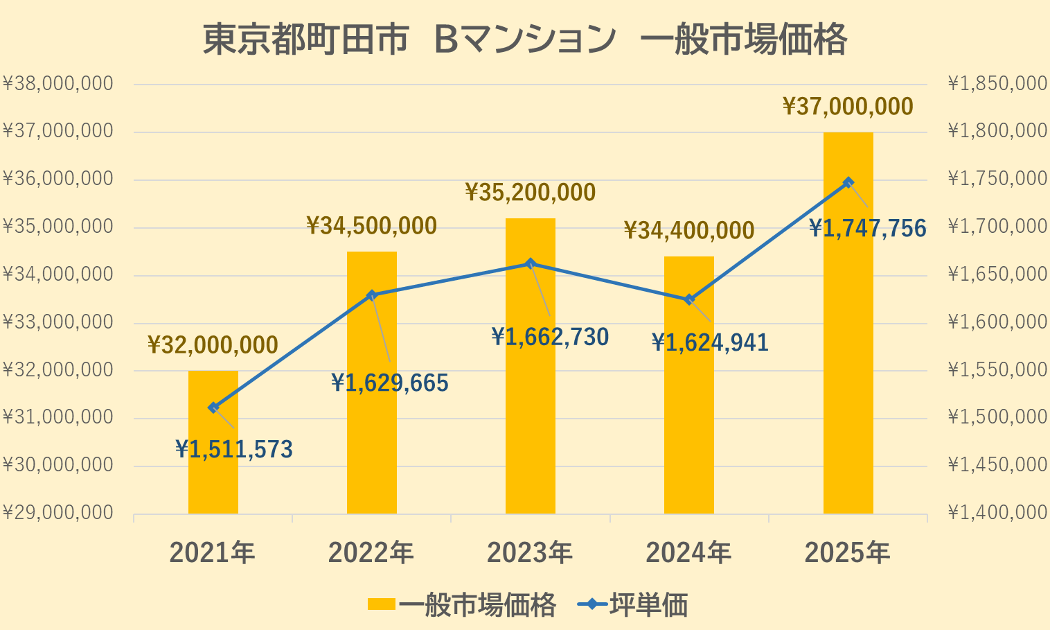 Bマンションの一般市場価格・坪単価の推移は上記【図4】の通りです。