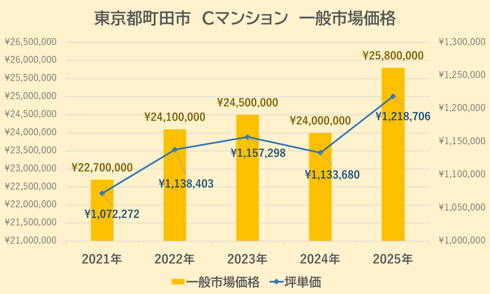 Cマンションの一般市場価格・坪単価の推移は上記【図5】の通りです。