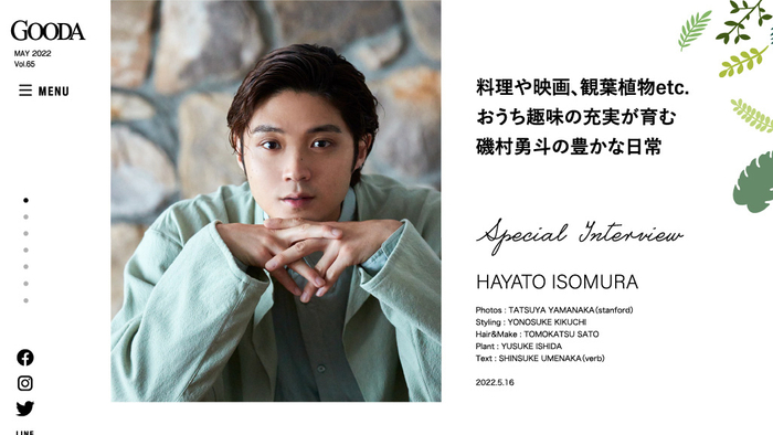 手にするだけで毎日ちょっとハッピーな気持ちになれる。そんな、とっておきを紹介しているライフスタイルWEBマガジン「GOODA(グーダ)」。表紙には、今年3月の第45回日本アカデミー賞で「ヤクザと家族 The Family」と「劇場版 きのう何食べた?」の演技が評価され、新人俳優賞を受賞した磯村勇斗さんが登場。