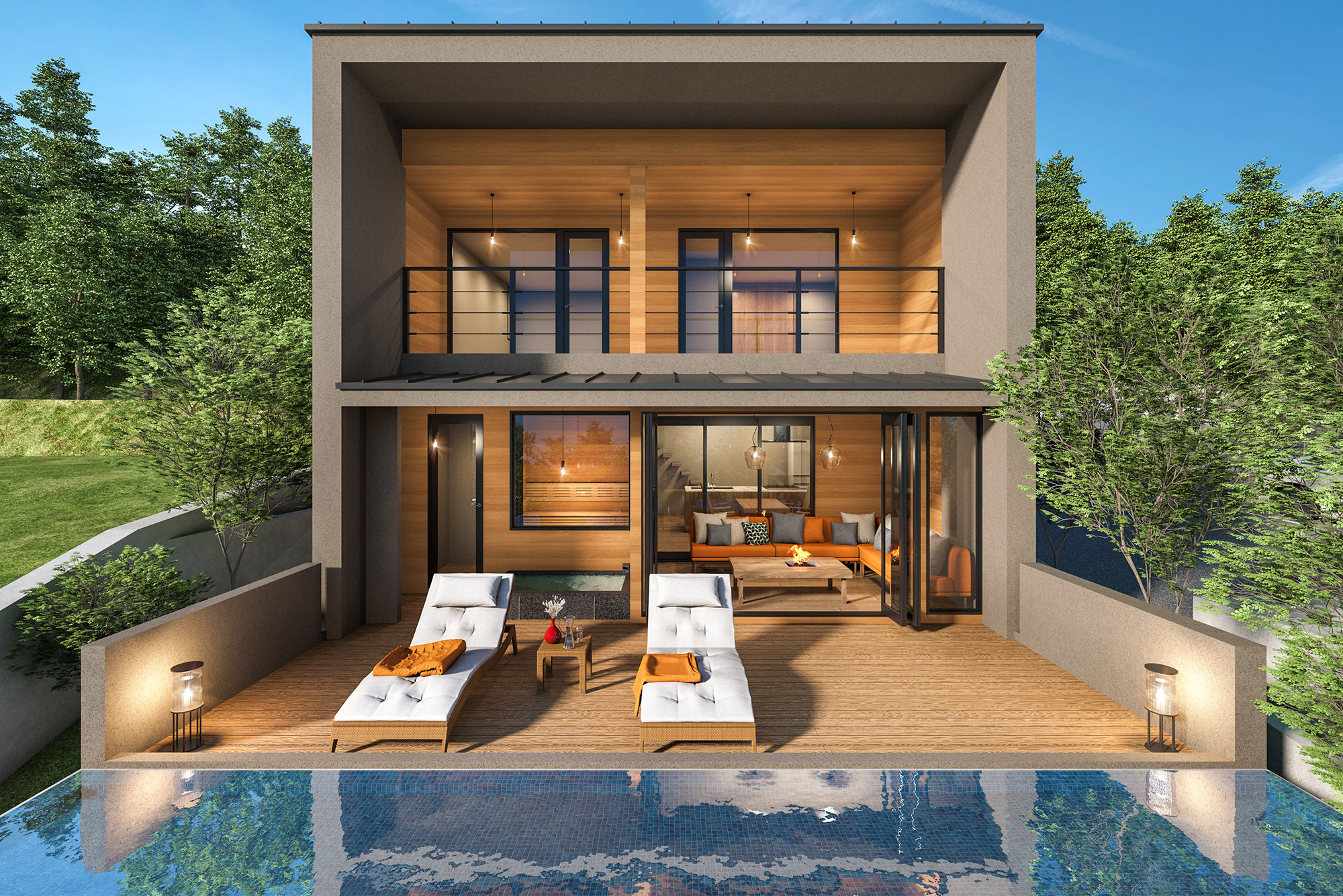 1日5組限定。全棟サウナ・天然温泉露天風呂付ヴィラ 「天空の温泉ヴィラ紬 河口湖」が2024年8月オープン