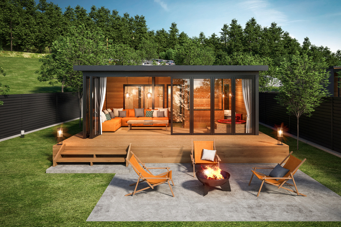 内と外との境界が曖昧で開放的な“グランピングタイプ”。アウターリビングでゆったり過ごしたり、青空の下広いお庭スペースを楽しんだりできるのはこのタイプだけ。
