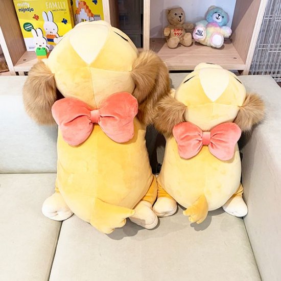 大小比べると、画像のような感じになります。2つ並んでいるとますますキュート♡首の後ろのリボンもかわいいですよね。