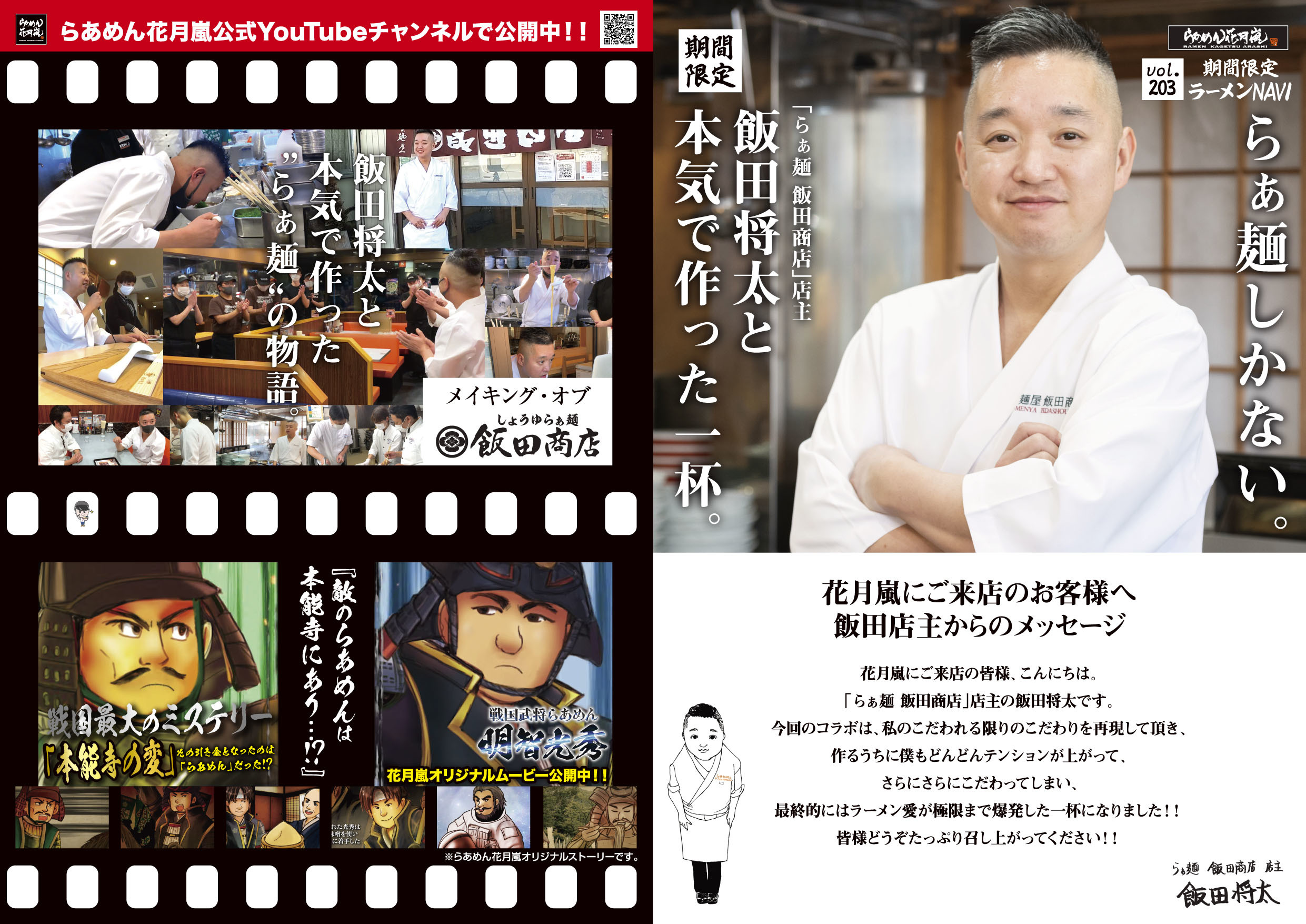飯田店主と本気で作った『しょうゆらぁ麺 飯田商店』を、是非お楽しみください。