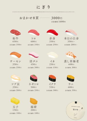 月〜土18:00-0:00までは六本木で18年の歴史を持つ老舗鮨の大将がおりますのでお寿司もお召し上がりいただけます。
