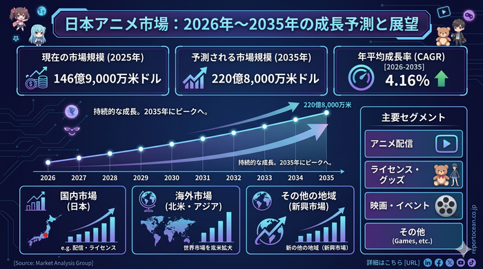 2035年に向けて拡張する日本アニメ市場:CAGR4.16%が示すグローバル収益機会と戦略的参入タイミング