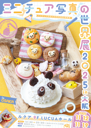 株式会社BACON(べーこん)は、ルクア大阪(大阪市梅田)にて2025年11月12日(水)~11月19日(水)の期間、2つの人気アート展「ねこ休み展」と「ミニチュア写真の世界展」を同時開催いたします。猫好き必見の「ねこ休み展」は、今年で10周年を迎えることを記念し、過去のアーカイブ作品から10周年限定グッズまで、“癒しの猫の世界”を存分に楽しめる特別な内容で開催します。さらに、同時開催となる「ミニチュア写真の世界展」では、まるで本物と見間違うほど精巧に作り込まれた“ミニチュアアート”の最新作が大集結。大阪初登場となる新作展示や限定グッズの販売も予定しており、幅広い世代が楽しめる見応えたっぷりの内容です。