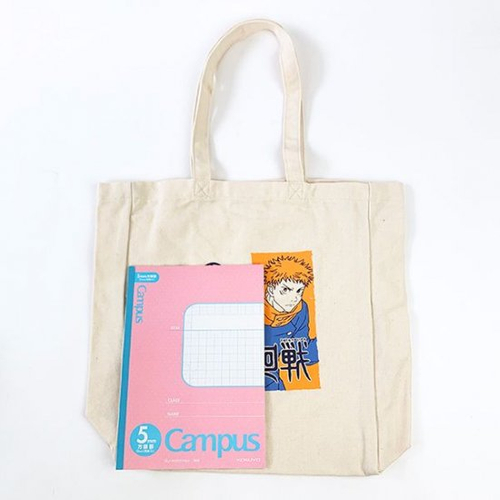 キャンバス地で大容量の実用的なバッグに、五条や悠仁がデザインされたシンプルなアイテムです。マチも広くてたくさん入るので、通学などにも大活躍♪エコバッグとしても活用できちゃいますよ。