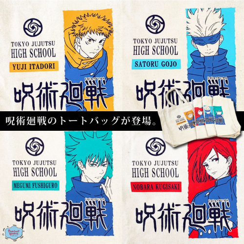 人気アニメ、呪術廻戦のトートバッグのご紹介です。