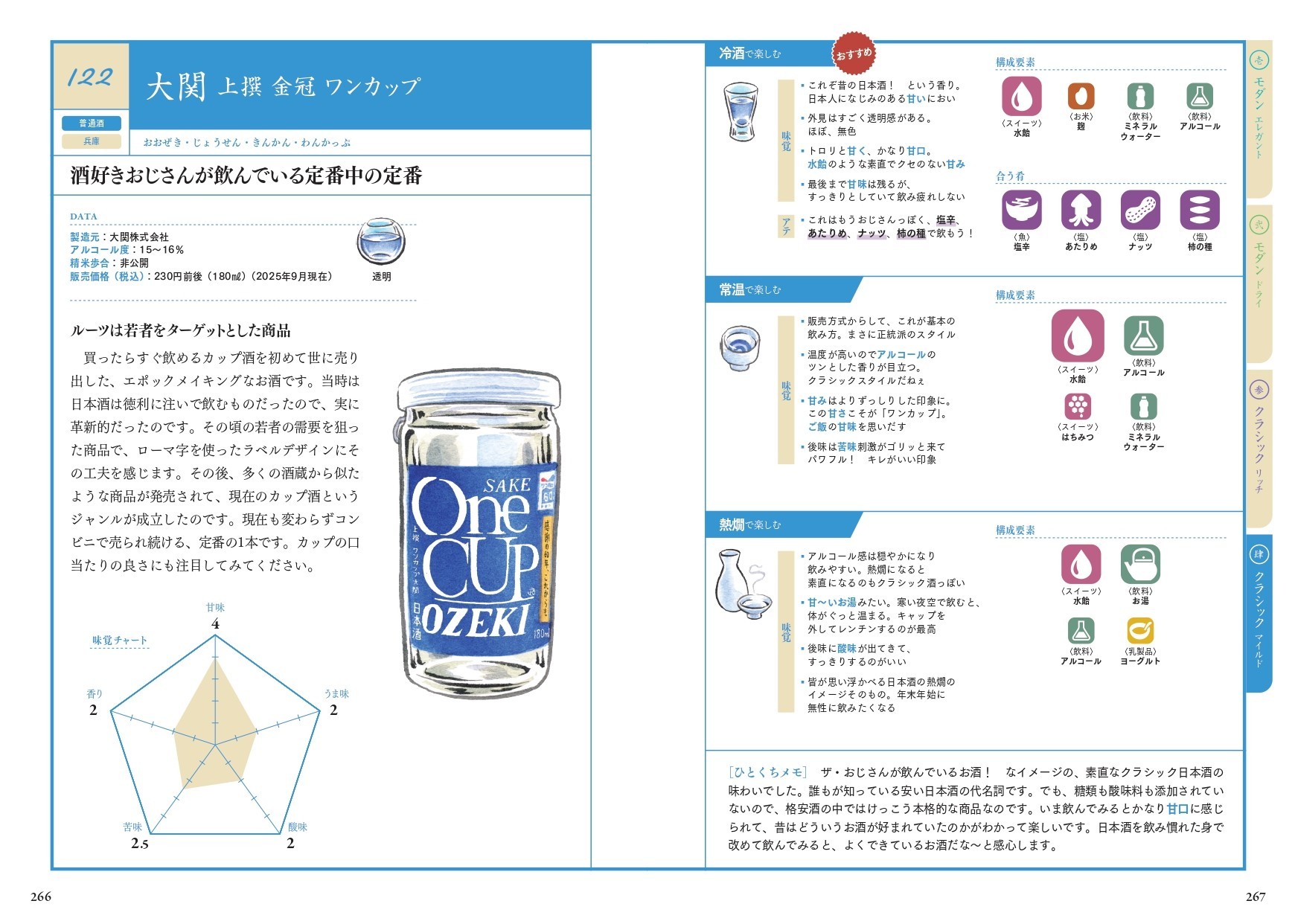 本書は、高級酒からカップ&パック酒、飲み方(冷酒・常温・熱燗)プラス「合う肴」まで、約1000銘柄の日本酒を嗜んだ酒ブロガーが「79本(モダン)×3(香り・味・ペアリング)」と「51本(クラシック)×3(冷酒・常温・熱燗)」の味覚を、「味覚アイコン」と「肴アイコン」を駆使しながら大衆に寄り添う言葉で表現した、これまでにない世界一やさしい日本酒図鑑です。