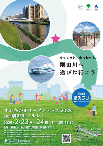 2月23日(日・祝)・24日(月・休)の2日間、足立区の新田さくら公園およびその周辺の隅田川テラスを会場に、「すみだがわオープンテラス2025 with 隅田川マルシェ」を開催します。