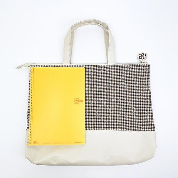 ミッフィー キルティングチェックシリーズには大きさ違いのバッグのラインナップもございます。こちらは、レッスンバッグ (アイボリー) です。
