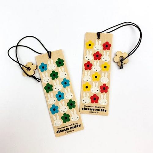 ナチュラルウッドな雰囲気のブックマーク。お花やミッフィーの小ぶりなチャーム付きが嬉しくて読書がはかどる、はかどる。