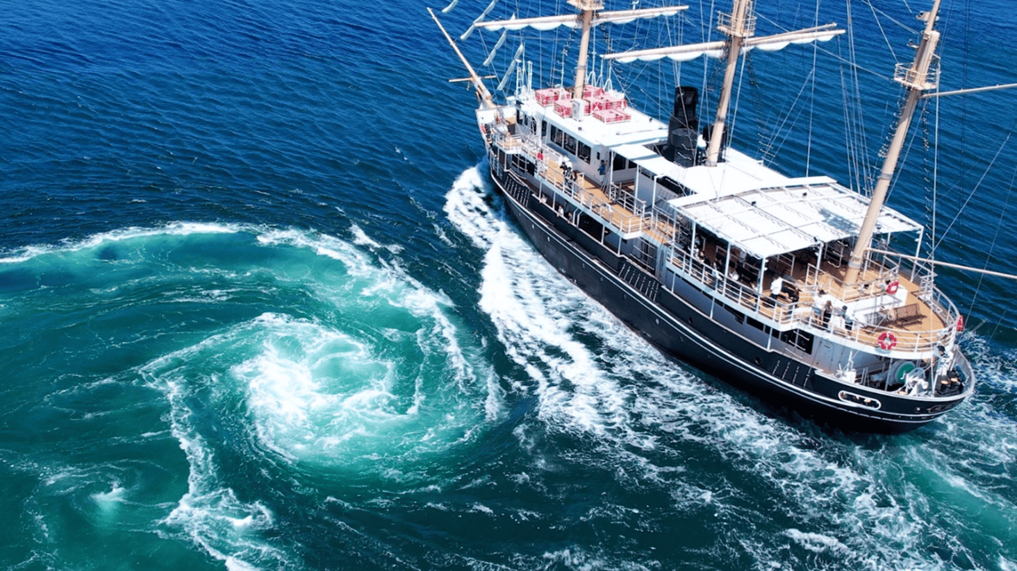 淡路島から世界最大級の渦潮を「咸臨丸」「日本丸」の大型帆船で体験する約1時間のクルージングです。