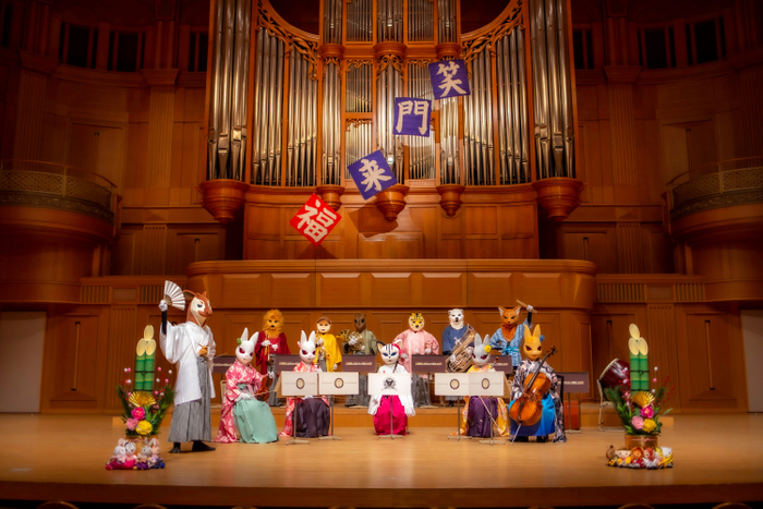 「ズーラシアンブラス ニューイヤーコンサート」は、2017年1月からスタートし今回で10回目を迎えます。東京・大阪・愛知の三都市で新年のお祝い! ズーラシアンブラスと弦うさぎ、クラリキャットのベルガモットが華やかな着物姿で出演し、お正月ならではのプログラムをお届けします。いつものクラシックコンサートとはがらりと趣向を変えたお正月限定プログラム。ご家族皆様で初笑いコンサートをお楽しみください。