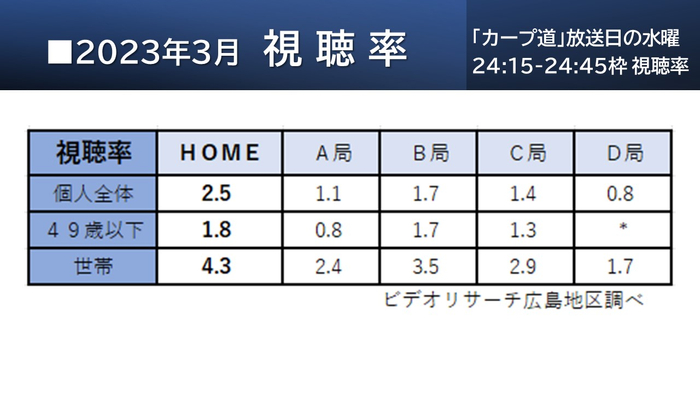 (※)「カープ道」放送日の(水)24:15-24:45枠視聴率