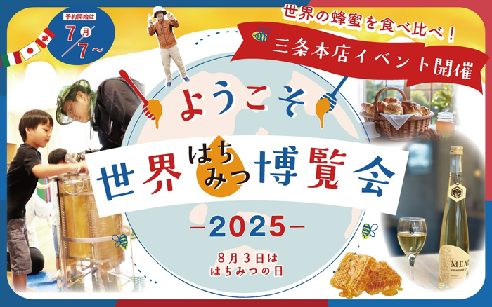 京都の蜂蜜専門店「ミールミィ」(運営:株式会社金市商店/京都市中京区)では、8月3日の「はちみつの日」に合わせて、2025年8月1日(金)から8月31日(日)まで、世界中の蜂蜜やミード(蜂蜜酒)を楽しめるイベント『ようこそ!世界はちみつ博覧会』を開催します。