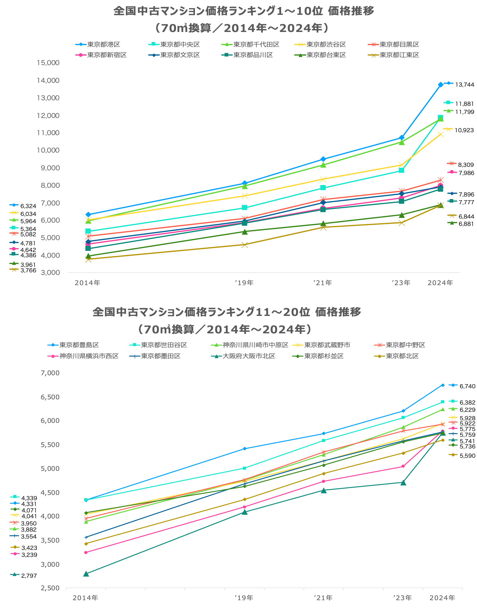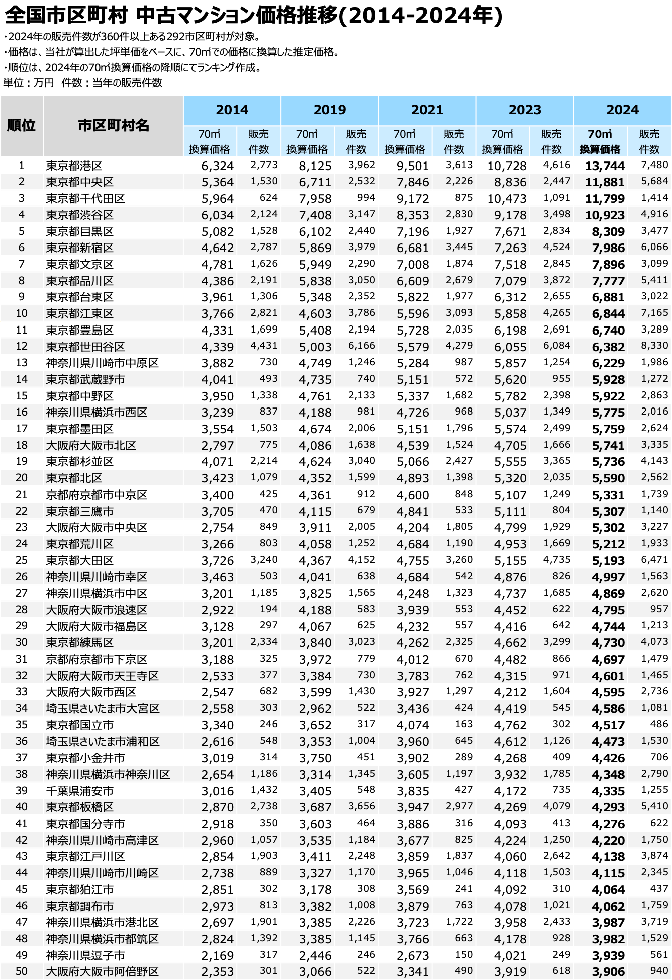 その第3弾として、2024年坪単価をベースに70㎡価格に換算した「価格※1」ランキング、また1/3/5/10年前からの価格上昇率を表す「騰落率」ランキングを発表いたします。