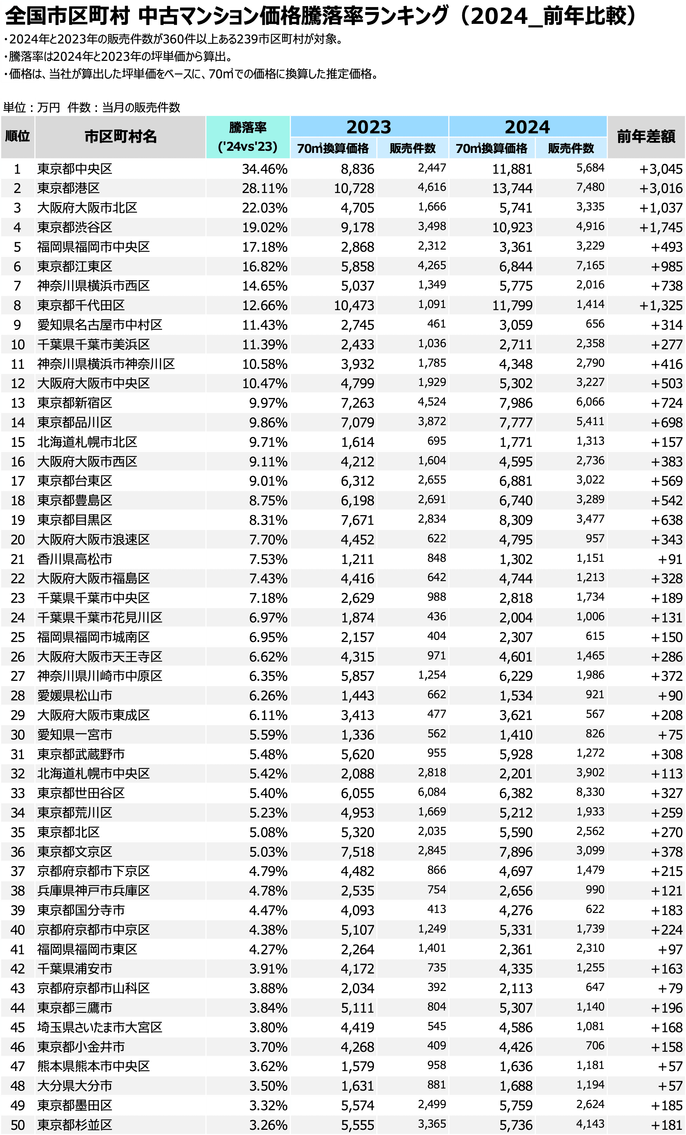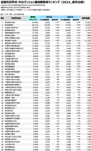 全国市区町村 中古マンション価格騰落率ランキング(2024年_前年比較)