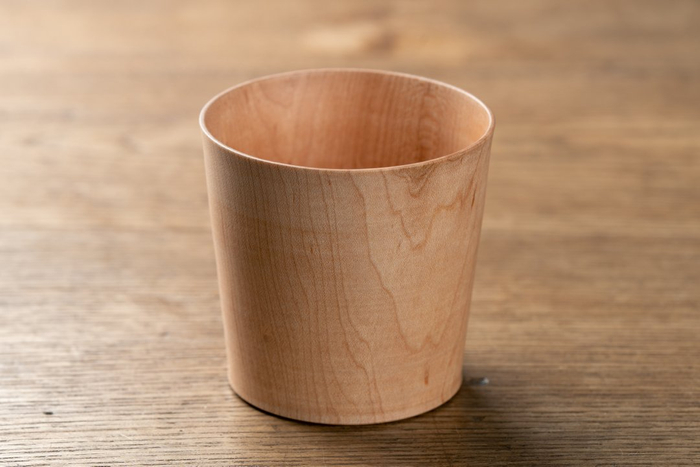 販売を開始した作品は計8点。年輪の模様が美しく、ほんのり赤い木地の色が桜の花を連想させるエゾヤマザクラのボウルや、挽き跡を残し自然な風合いに仕上げた楓のフリーカップ、手彫りの熊などです。