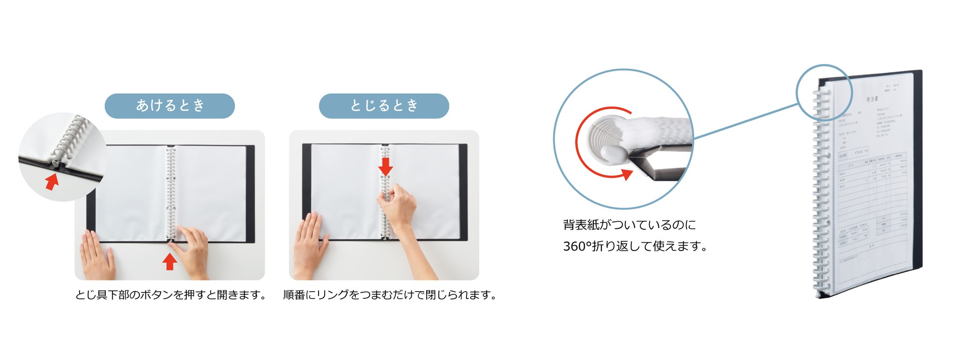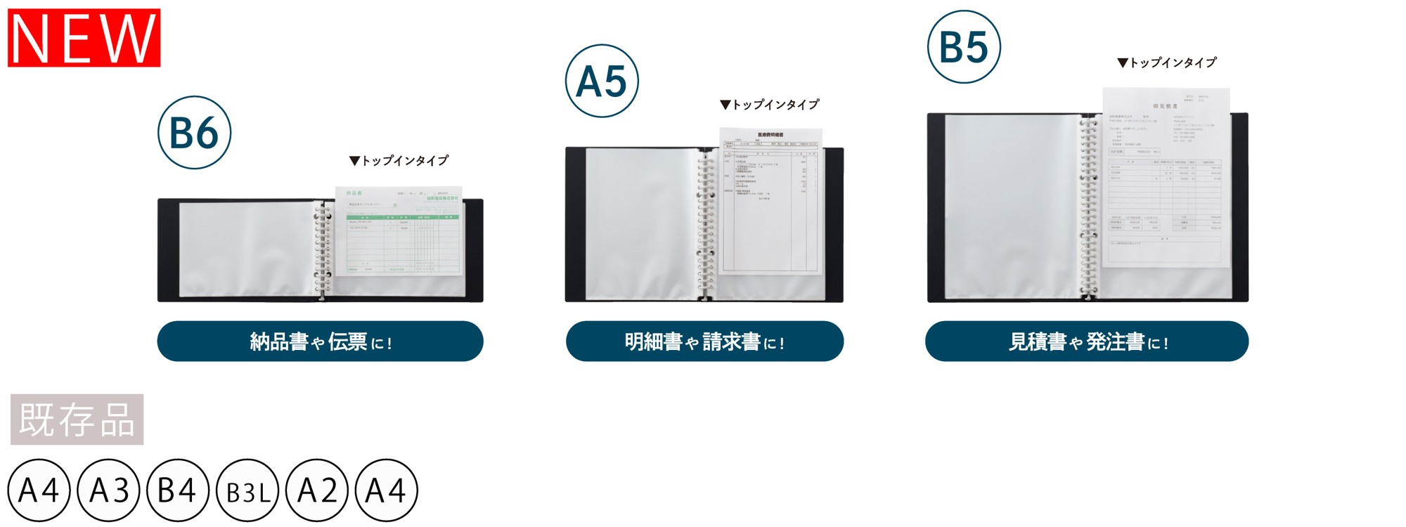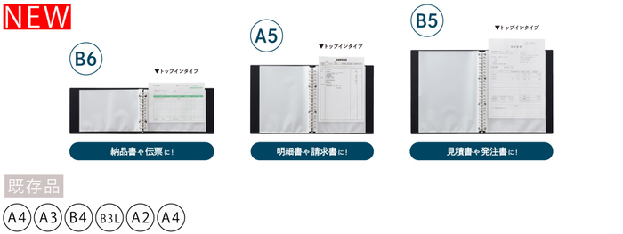 株式会社LIHIT LAB.(本社:大阪市中央区農人橋1-1-22 代表取締役社長:田中宏和)は、2025年12月下旬より、AQUA DROPs(アクアドロップス)シリーズより、多種多様な書類サイズに対応したクリヤーブック<ポケット交換式>の新ラインナップを発売いたします。(3品番3SKU)同シリーズのクリヤーブック<ポケット交換式>は、ポピュラーなA4サイズから大判サイズ(B4、A3、B3、A2)まで、取り揃えが豊富な点でご好評いただいているシリーズです。この度、さらに幅広い種類の書類サイズに対応するため、新ラインナップとして「B6・E型」、「A5・S型」、「B5・S型」の3タイプを追加。お持ちの様々な書類サイズの収容を同シリーズで解決します。とじ具の特長として、表紙を360°折り返してもスムーズに使用できる設計なので省スペースで使用することができます。また、とじ具の開閉は、下部のボタンを押すと簡単に開き、とじ具のリング部分をつまむだけで簡単に閉じることができます。書類の閲覧やポケットの交換など、一連の動作におけるストレスをできるだけ抑えた自然と使いやすい使用感となっております。サイズ展開の拡充により、同シリーズでファイル類を統一できる幅がさらに広がります。