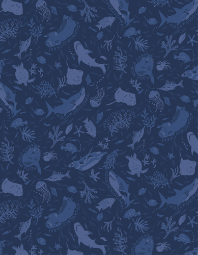 新ユニフォームのブルゾンとパンツには、当館で飼育しているシロワニやカナダカワウソ、フンボルトペンギンなどの生き物たちのイラストが描かれたテキスタイル(生地)を使用しています。海中をイメージした紺色をベースに、のびのびと泳ぐ生き物たちの様子が描き下ろされたオリジナルの図柄です。イラストになっている生き物たちは、実際に館内で観察することができますのでユニフォームとあわせて、ぜひご注目ください。