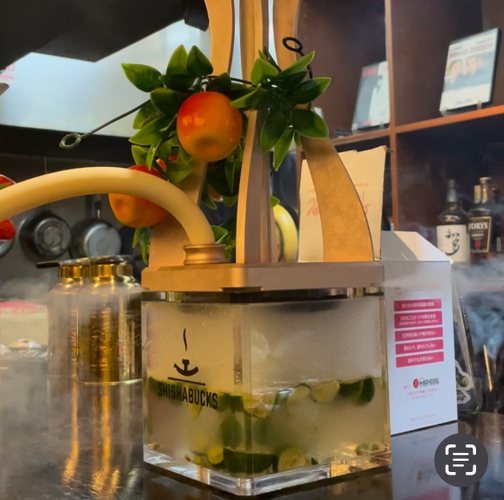 VAYUの魅力の一つは、ボトルオプションが無料で提供されていることです。その月の旬や季節に合わせてボトルオプションを提供致します。本日のおすすめは、グアバ&ライチのフレーバーに、新鮮なシークワーサーが贅沢にボトルに加わったシーシャ。