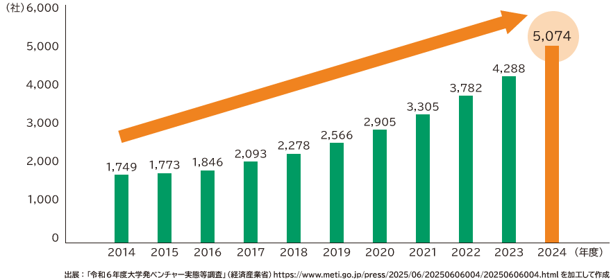 2024年度の近畿大学での大学発ベンチャーは前年比約1.5倍の118社に上り、全国でもこの10年で約3倍に増加、5,000社を超える規模に伸長しています。関西みらい銀行は産学連携で次世代を担う起業家の育成支援に取り組み、関西のスタートアップ活性化に寄与していきます。