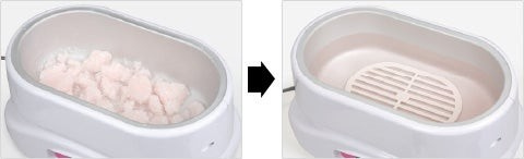 ・ワックスは容器内部にあるメモリ(8分目)までは入れるようにしましょう。※量が少ない場合、高温になりすぎる場合があり、肌トラブル・機械の故障となる場合がありますのでご注意ください。