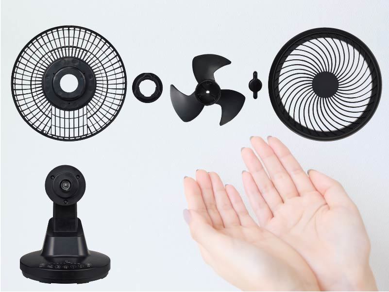 本製品はいつでもきれいな風でお使いいただけるように、お手入れのステップを単純にした“お手入れ簡単ガード”を採用。ガードやパーツをくるくると回すだけで前ガードから後ガードまで全て工具を使わずに取り外せます。また、羽根やガードは水洗いができ、思い立ったら隅々まできれいにお手入れをしていただけます。