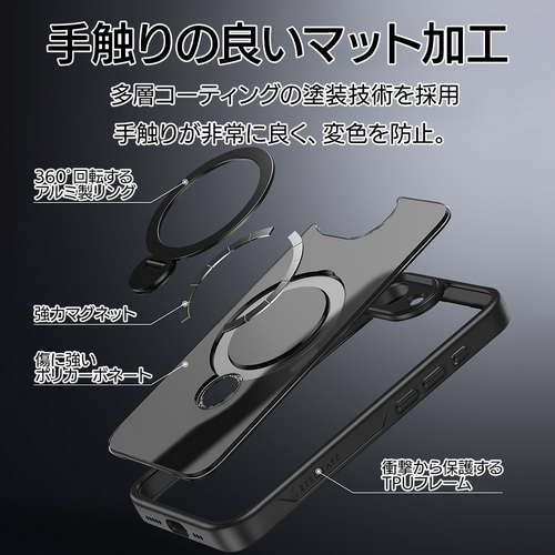 MagSafeアクセサリー対応リング付きのハイブリッド背面ケースです。